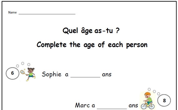 Say Your Age French Worksheetsimple Writing Exercise To Help Etsy