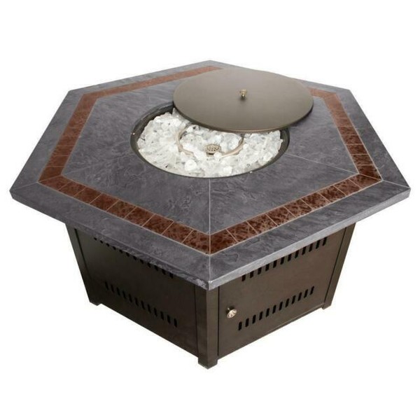 Hiland wlf hex fire pit hexagon table with slate large. The warmth and ambience is only surpassed by the beauty of the slate tile table top and lattice design base. Stainless steel burner ring. L x 375 in.