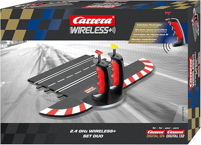 Carrera digital 132 124 wireless set 24 ghz 2 handregler. Geeignet für die Carrera-Digital Black Box 30344 oder Control Unit 30352 Die neuen 24GHZ Wireless Handregler können auch mit kabelgebundenen Handreglern und den älteren Infrarot-Handreglern kombiniert werden. Kabelloser Slotcar-Fun mit der 24 GHz WIRELESS Funktechnologie Ganz ohne Kabelgewirr oder den alt bekannten Kabelsalat geht es mit dem Carrera WIRELESS Set Duo Digital auf der. Kabelloser Slotcar-Fun mit der 24 GHz WIRELESS Funktechnologie Ganz ohne Kabelgewirr oder den alt bekannten Kabelsalat geht es mit dem Carrera WIRELESS Set Duo Digital auf der Rennstrecke zur Sache. Alle Vorteile von Carrera WIRELESS im Überblick. 24 GHz WIRELESS Funktechnologie Für bis zu 6 Fahrer Ultraleichter kabelloser Handregler Anschluss der Ladestation direkt an der Carrera Bahn Bis zu 15 m. Idealo Schnäppchen News per E-Mail Anmelden und bis zu 50 sparen. Carrera Digital 132 132 Carrera Digital 124 Carrera 132 Wireless Handregler Carrera Ausbauset 132 Carrera 124 8 Jahre Digital. Anzeige Österreichs großer Preisvergleich - brennen tuast weniga oist denkst. Carrera Wireless Set Duo Digital 132 24 GHz Wireless 20010109 Hallo ich verkaufe mein Carrera Wireless Set Duo Digital 132 24 GHz Wireless 20010109. Carrera Digital 124132Evolution 2x Leitkiele 8x Doppelschleifer 20366 Jetzt zum Newsletter anmelden. Anzeige Finde aktuelle Preise für Digital 132.